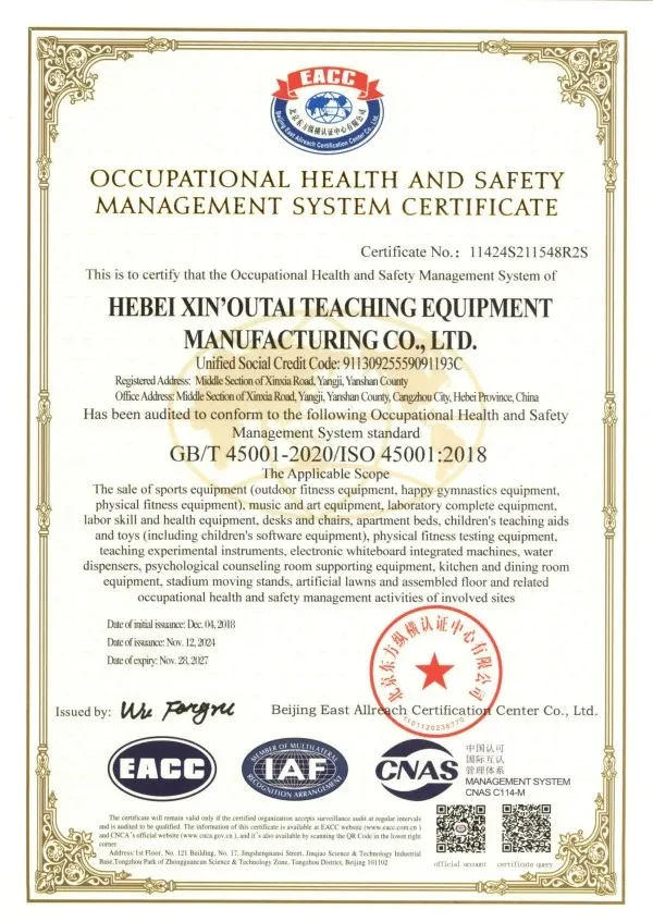 Вся продукция соответствует международным стандартам безопасности. Мы имеем сертификаты ISO и CE. Наши материалы нетоксичны и безопасны для детей.